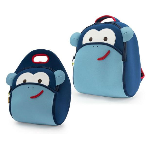 ダバワラ dabbawalla 【お得なセット割引】【洗濯できる保冷機能付きバッグ】【化学有毒成分未使用】 男の子用ブルーモンキーバックパックxランチバッグ2点セット リュック お弁当バッグ お弁当袋 【楽ギフ_包装選択】【ラクーポンで送料無料】
