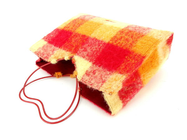 ふわふわのチェックの生地とハートの持ち手がとてもかわいいハンドバッグです♪
